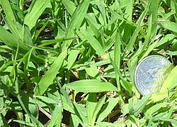 Back to what you need to do this spring… The important thing to remember is that crabgrass can sprout before grass seed, and that it can keep sprouting for many weeks. Crabgrass starts to sprout when the soil temperature is only 54 degrees, while most desirable grasses require temperatures in the low ’60s. This means that if seeds for lawn grass and crabgrass are both sitting in that bare spot in your lawn, the crabgrass gets a head start of at least a week or two, and sometimes longer. This is why you need to act early in the year to control crabgrass, by applying a “pre-emergent” controller.